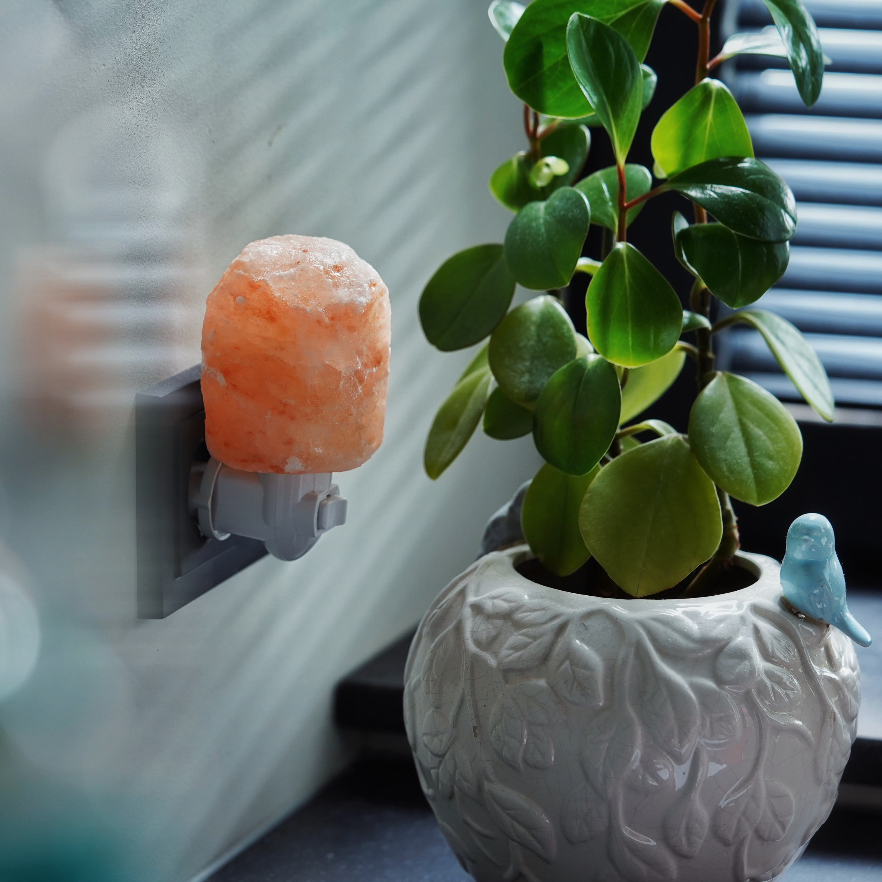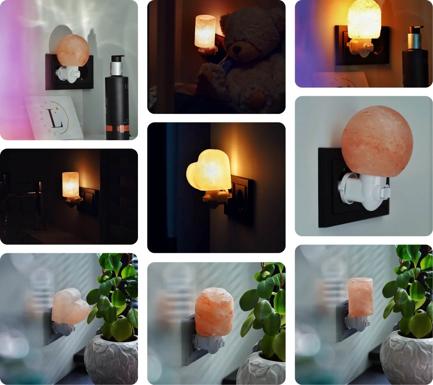 The lamp absorbs moisture from the surrounding air, trapping pollutants, dust, and allergens. When the salt is warmed by the light inside, it releases clean, purified air back into your space.